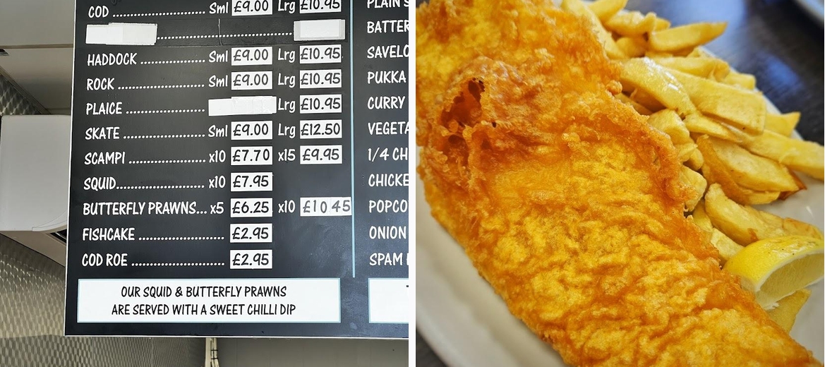 This has changed loads since we went a fair few years ago. Spotlessly clean from door to table. We were seated very quickly and ordered. Small cod, chips and mushy peas x 3 and scampi and half a portion of chips. It arrived in minutes, piping hot and fresh as you could get. The portion size was ample. In fact some was left. The staff are very attentive, we were asked 3 times if everything was ok. Gladly it was. The prices are very reasonable. The toilets were spotless and there’s a disabled toilet as well When we left the fryer wished was a good rest of the day.